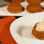 Coat 1 sheet parchment with cooking spray. Place, coated side down, on top of filled muffin pan. Place full sheet pan on top of parchment, so tops of thimble cakes will remain flat while baking.